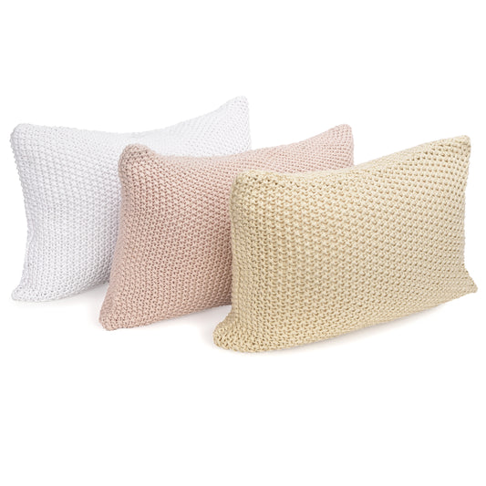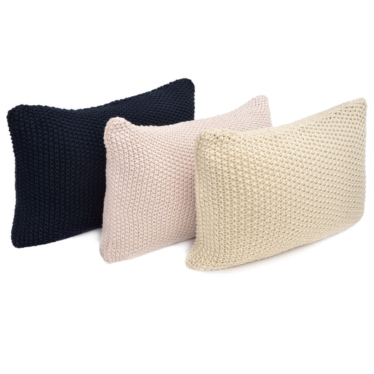 With rich texture and inviting comfort, these premium pieces are designed to elevate both your space and your downtime. Our Rami and Jamie collections feature cozy, chunky-knit throws and hand-knit pillows made from 100% cotton in calming neutral tones, perfect for adding warmth, depth, and softness to any space.