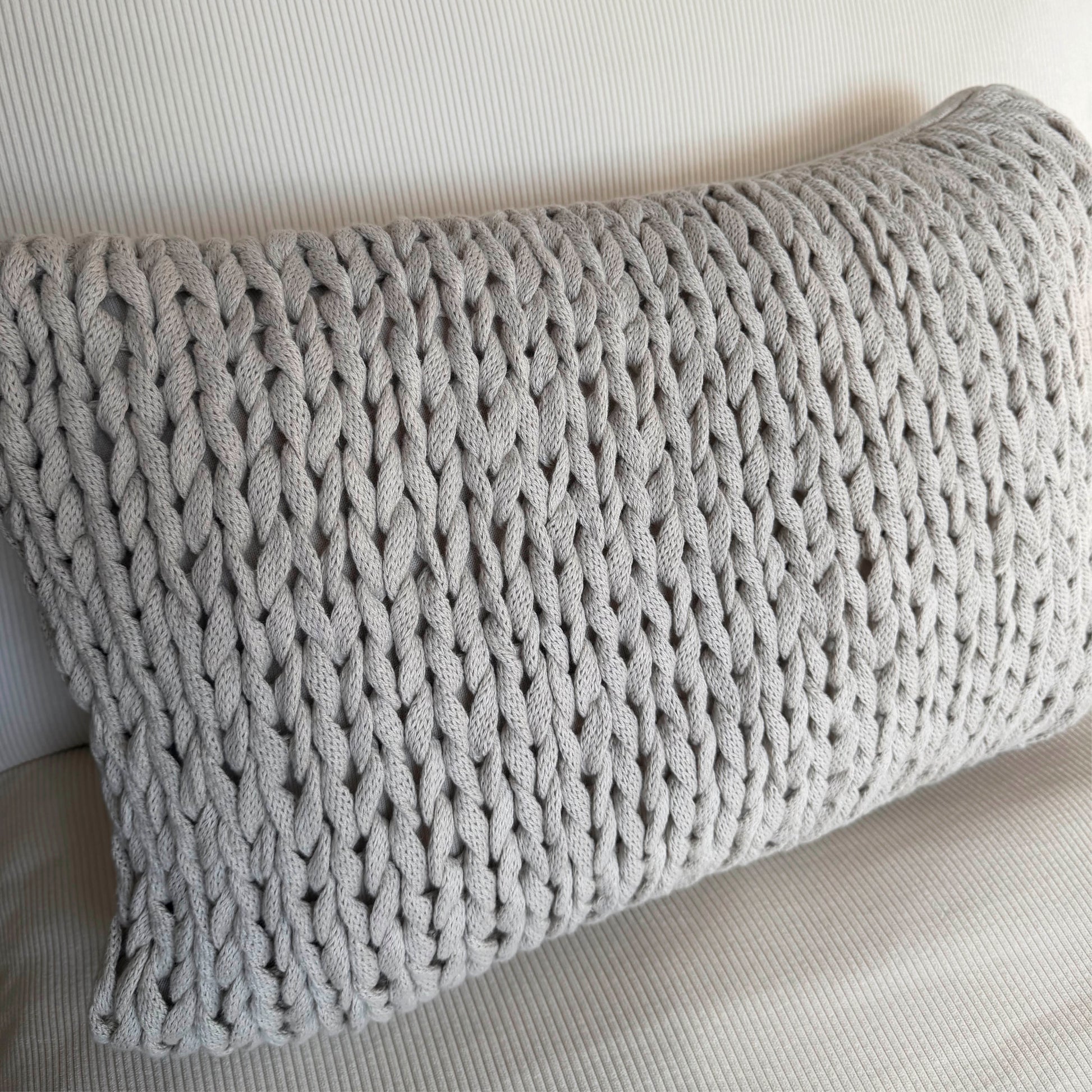 Part of our Premium Collection, our 100%-cotton, chunky hand-knit Rami Oatmeal pillow is ideal for adding texture and dimension to a space. But more importantly, it's super cozy, making it the perfect pillow to cuddle up with.